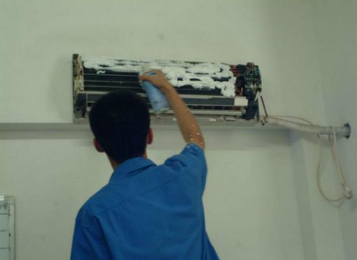 | 广灵空调维修师傅给广灵用户上门维修清洗空调。 |